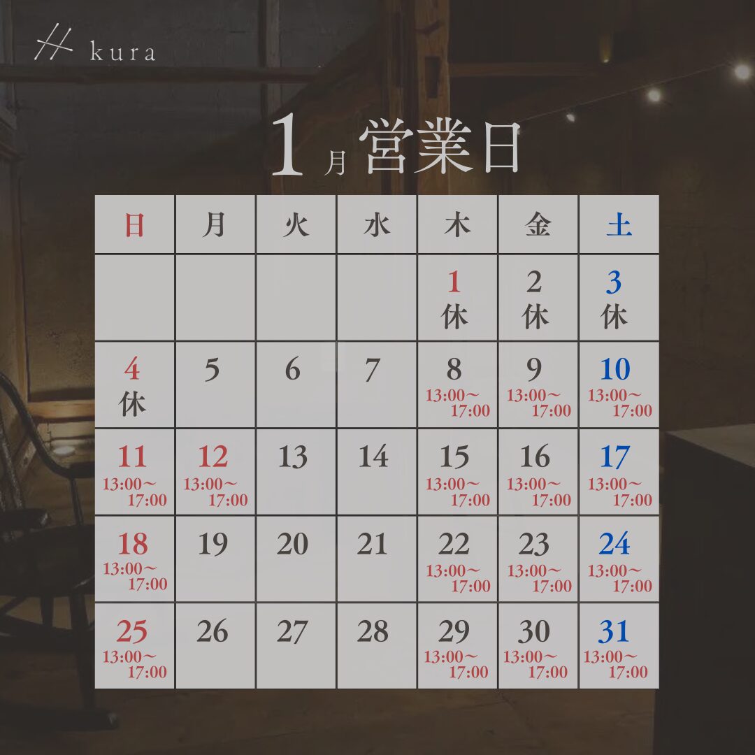 長野県東御市にある日本酒専門店「坐kura」は、八重原産の酒米に特化した日本酒の品揃えと、八重原の豊かな自然を感じていただけるお店です。1月の営業日をお知らせいたします。